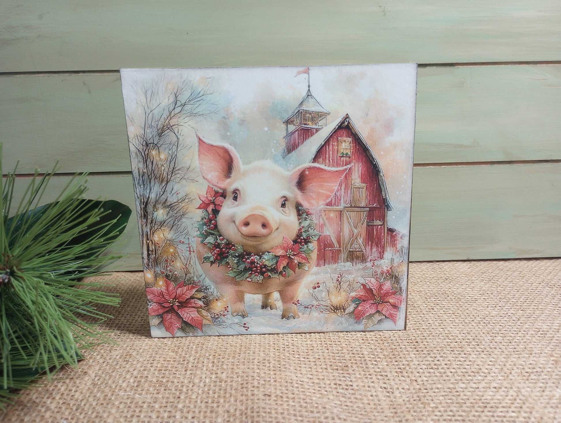 Olde Red Barn - Pig Wood Block Sign - CHAROLETTE